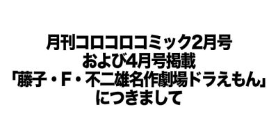 【お詫び】月刊コロコロコミック2月号および4月号掲載「藤子・F・不二雄名作劇場ドラえもん」につきまして
