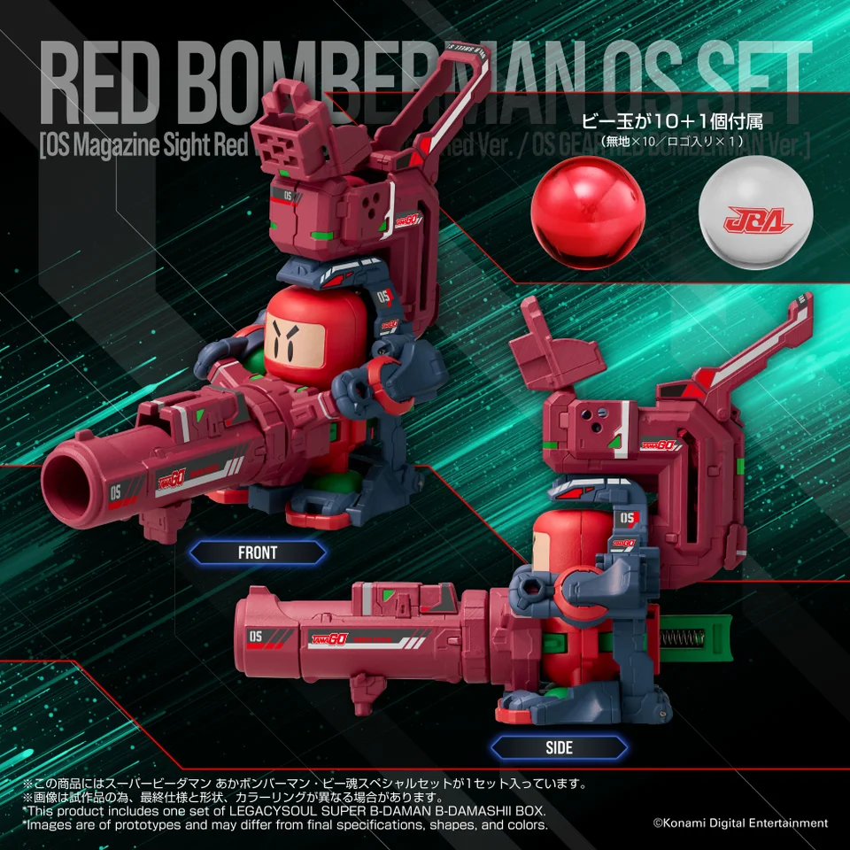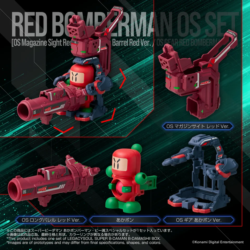 あかボンバーマン・OSギア・マガジンサイト2・ロングバレル2・ビーダマ11個入り(LEGACYSOUL 他のOSビーダマンとの互換性有り)
