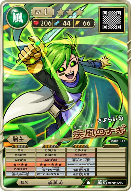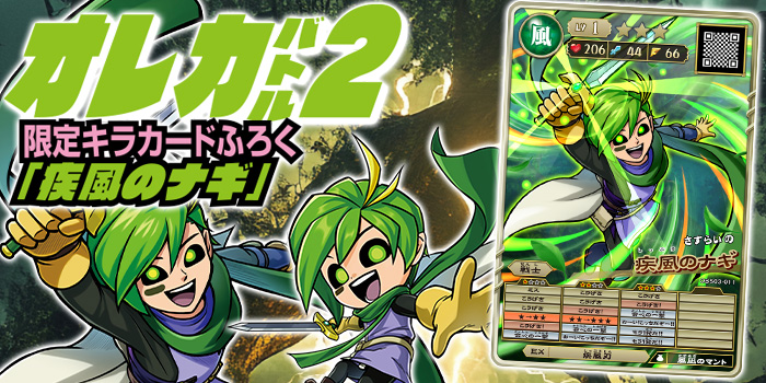 日本全国が大熱中の『モンスター烈伝 オレカバトル2』から、限定キラカード「疾風のナギ」が登場!
