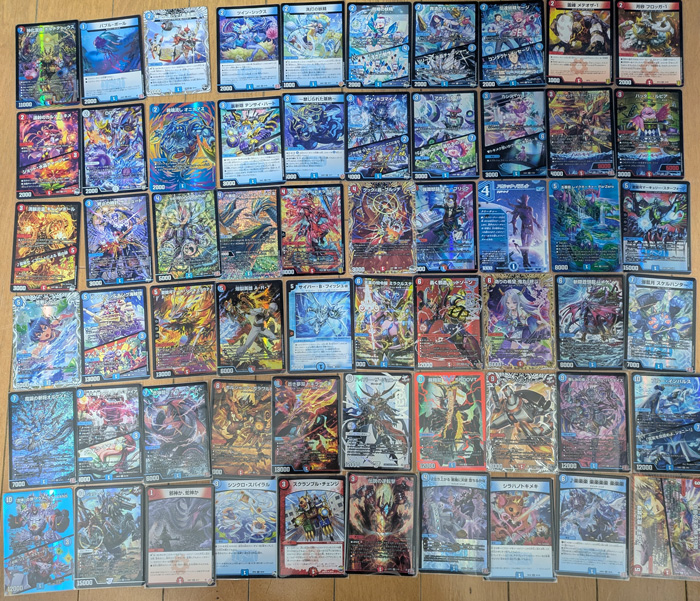 | 《バブル・ボール》 | 《異端流し オニカマス》 | 《飛ベル津バサ「曲通風」》 | 《洗打の妖精》 | 《同期の妖精 / ド浮きの動悸》 | 《救済のカルマ ミルク / リリーフ・水晶チャージャー》 | 《連射のカルマ ユキメ / ショット・水晶チャージャー》 | 《ツイン・シックス》 | 《伝達妖精セージ / コンタクト・メッセージ》 | 《霊峰 メテオザ-1》 | 《月砂 フロッガ-1》 | 《DG ~裁キノ刻~》 | 《終止の時計 ザ・ミュート》 | 《裏斬隠 テンサイ・ハート》 | 《~禁じられた蒸熱~》 | 《ボン・キゴマイム / ♪やせ蛙 ラッキーナンバー ここにあり》 | 《アカシック・B / 「バブルの泡に溺れるのヨ!」》 | 《カシス・グレープ / ♥トキメク思いがグレイドをあげ~る》 | 《ボルシャック・ハイパー・ヴォルジャアク》 | 《ハッター・ルピア》 | 《満韻炎霊 キャノンボール / ♪夏草や イフリートによる 夢の跡》 | 《アカシック・パラレル》 | 《seiWond’Ramar》 | 《六番龍 シックスフォール Par滝》 | 《ダイナボルト <ドギラ.Star>》 | 《強瀾怒闘 キューブリック》 | 《クック・轟・ブルッチ》 | 《サイバー・B・フィッシュα》 | 《五番龍 レイクポーチャー ParZero》 | 《愛銀河マーキュリー・スターフォージ》 | 《愛銀河マーズ・シンギュラリティ》 | 《蒼斬しのぶ》 | 《K・アトラン&キング海賊団 / アイアイサー・チャージャー》 | 《爆裂英雄 A・R・T》 | 《斬隠蒼頭龍バイケン》 | 《天革の騎令嬢 ミラクルステラ》 | 《偽りの希望 鬼丸「終斗」》 | 《轟く邪道 レッドゾーン》 | 《蒼神龍アナザー・ワールド》 | 《爆藍月 スケルハンター》 | 《魔誕の斬将オルゲイト》 | 《消火機装コントロール・ファイア / パンドラ・チャージャー》 | 《飛翔龍 5000VT》 | 《ボルシャック・ガラワルド》 | 《蒼き夢双 ドギラゴン天》 | 《ハイパー・ザ・ジョニー》 | 《楽しみの夜 フミビロム・パラダイス》 | 《アイアン・マンハッタン》 | 《「合体」の頂 アクア・TITAAANS / 「必殺!ジェット・カスケード・アタック!!」》 | 《ブルー・インパルス / 「真実を見極めよ、ジョニー!」》 | 《ジョリー・ザ・ジョニー Final》 | 《邪神か、蛇神か》 | 《シンクロ・スパイラル》 | 《スクランブル・チェンジ》 | 《伝説の逆転撃》 | 《♪立ち上がる 悪魔に天使 堕ちるかな》 | 《シラハノトキメキ》 | 《♪楽楽楽 楽楽楽楽 楽楽楽》 | 《自由の王道 桃天守閣/心の王道 龍王武陣》 |