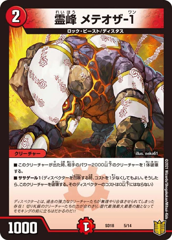《月砂 フロッガ-1》はパートナーの着地こそ制限しないもののメタクリーチャーとしてそこそこ優秀だし、《霊峰 メテオザ-1》は着地時点で仕事を終えているので対処することは相手にとってはテンポロスになる。カードがすべて1枚差しのデュエパーティーではパートナー以外での再現性の担保が難しい分、「その1枚に複数シチュエーションでの活躍を見込めるかどうか」が採用基準となってくるのだ。