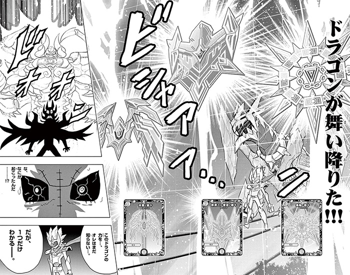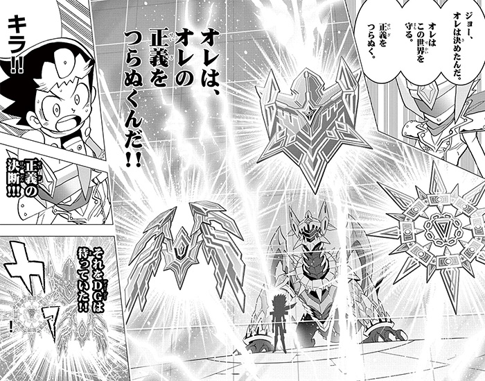 キラvsゲジスキー戦では、毒に侵されピンチを迎えたキラの言葉がDGに届き《サッヴァークDG》が降臨。舞い降りたドラゴンに《暴輪ノ裁キ》など“裁きの紋章”たちも呼応した。