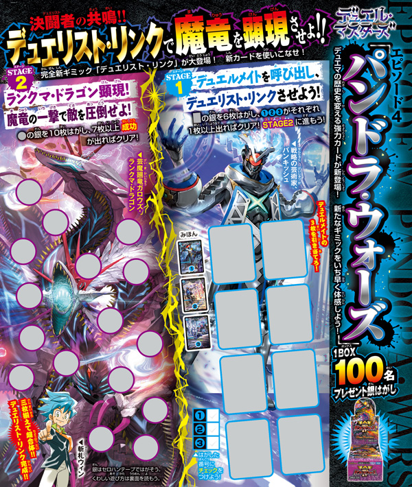 『デュエル・マスターズ』からは、エピソード4「パンドラ・ウォーズ」1BOXが100名に当たるプレゼント銀はがしが登場!