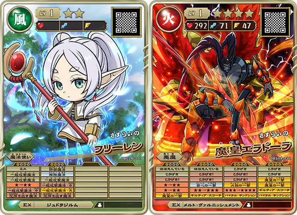 超人気まんがの主人公「フリーレン」と4章のボス「魔皇エラドーラ」のWオレカふろく!! ※カードふろくではありません。