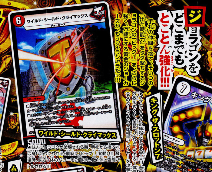 また、2018年発売の「月刊コロコロコミック7月号」では、《ジョット・ガン・ジョラゴン》を強化できるカードとして《ワイルド・シールド・クライマックス》が紹介されていた。