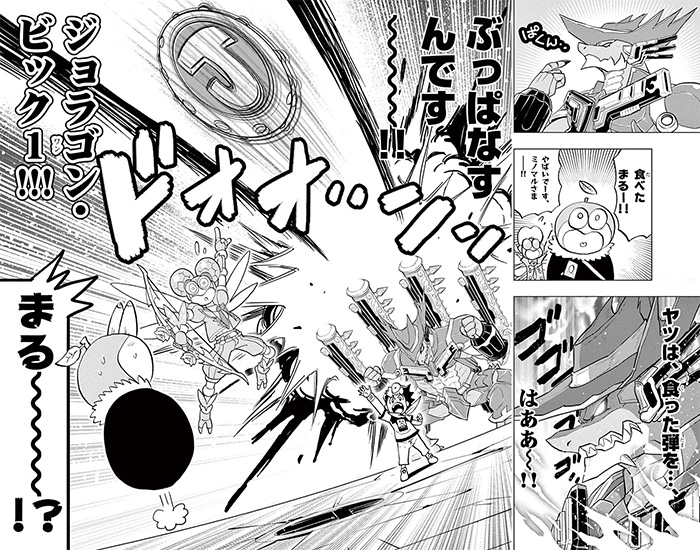 ディメンションゲートをくぐって地球へやってきたミノマルは、闇王ゼーロと勘違いした切札ジョーに巨大なドングリを落として攻撃してしまう。