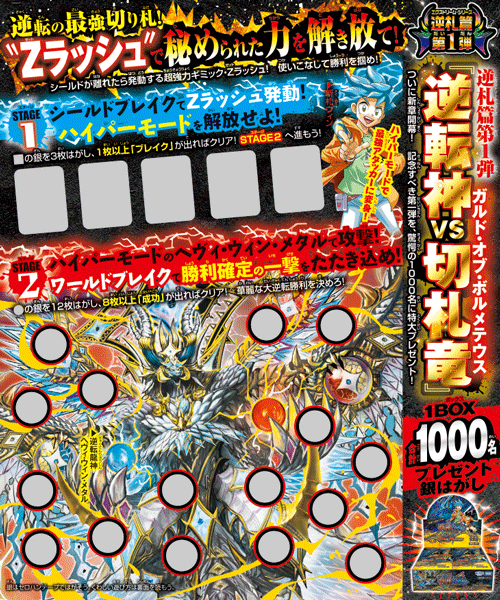 『デュエル・マスターズ』からは、逆札篇 第1弾「逆転神 VS 切札龍」が1BOX1,000名に当たるプレゼント銀はがしが登場!
