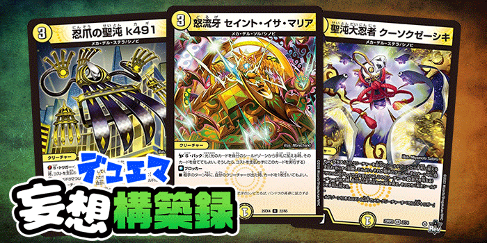 最速で《漲る混沌 ハッポウマントラ》の着地を目指すコンセプトだと2ターン目終了時に安定して2体のシノビを用意する必要がある一方、《怒流牙 セイント・イサ・マリア》は素出しが3コストなので《ドラン・ゴル・ゲルス / 豪龍の記憶》が絡まない限りその2体のシノビにカウントできない。そうなると攻撃的にシノビを展開するのがコンセプトなのに防御的なシノビが足を引っ張るというカスの矛盾によって「カス」の頂のゼニスが爆誕しそうになってしまったのだった。