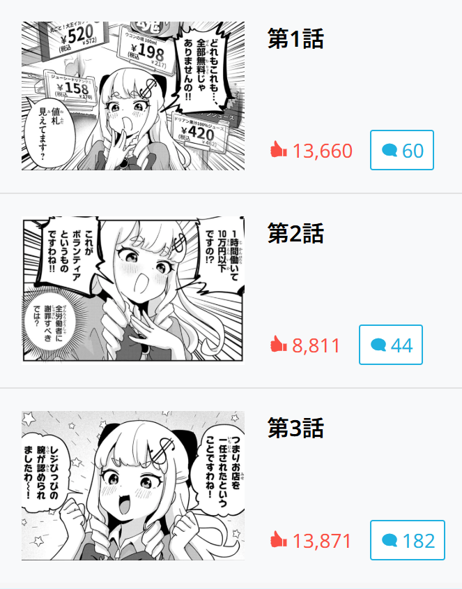 コメント・いいね機能で作品を盛り上げよう! SNSで #コンビニ令嬢きらら をつけた感想も待ってるぞ!