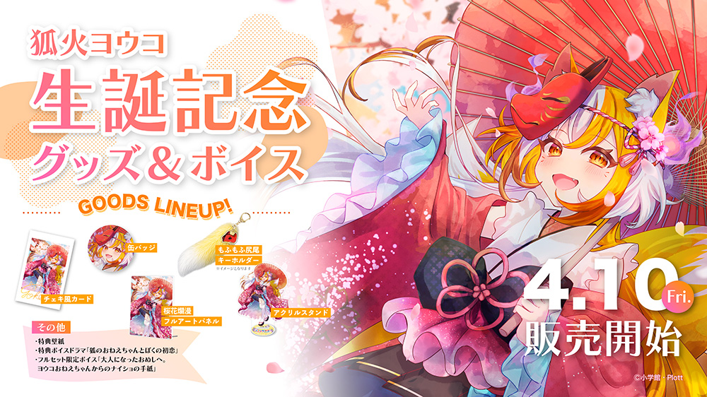 コロコロコミック発のVTuber「ゾンちゅう」のメンバーとして大活躍中の狐火ヨウコの生誕グッズが本日4月10日(金)より販売開始!!