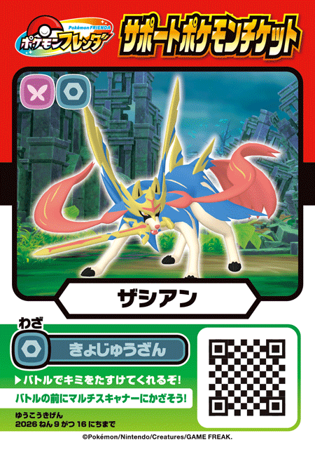 ●『ポケモンフレンダ』サポートポケモンチケット「ザシアン」