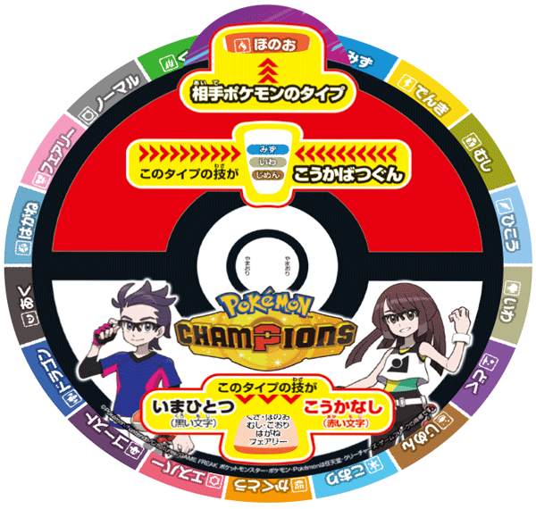 大人気配信中の『ポケモンチャンピオンズ』で使える、タイプ相性表! くるくる回して、あいての弱点を見極めろ!!