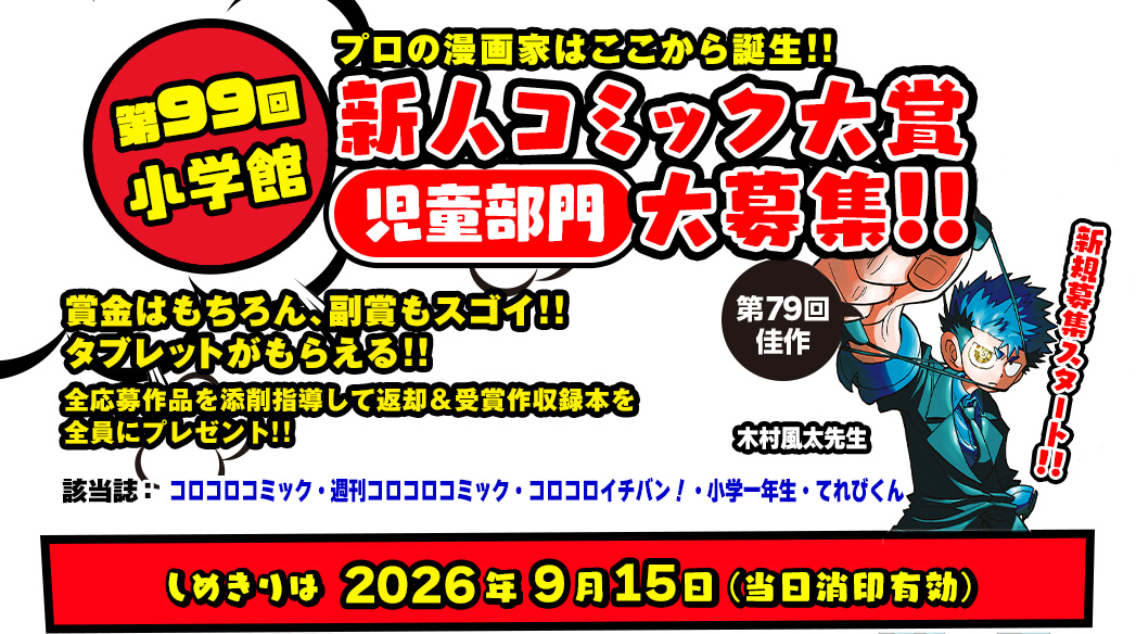 ※この賞に関するお問い合わせを審査員の先生方のSNS等へ行うことはお控えください。週刊コロコロのフォームからお問い合わせいただきますようお願いします。